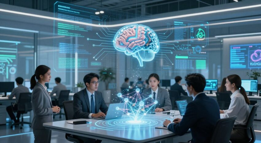 AI helps businesses make smart choices by predicting what will happen next. It looks at past data and current trends to spot chances and challenges.